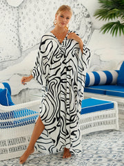 Striped Side-Split Maxi Dress – Elegant Autumn Beachwear