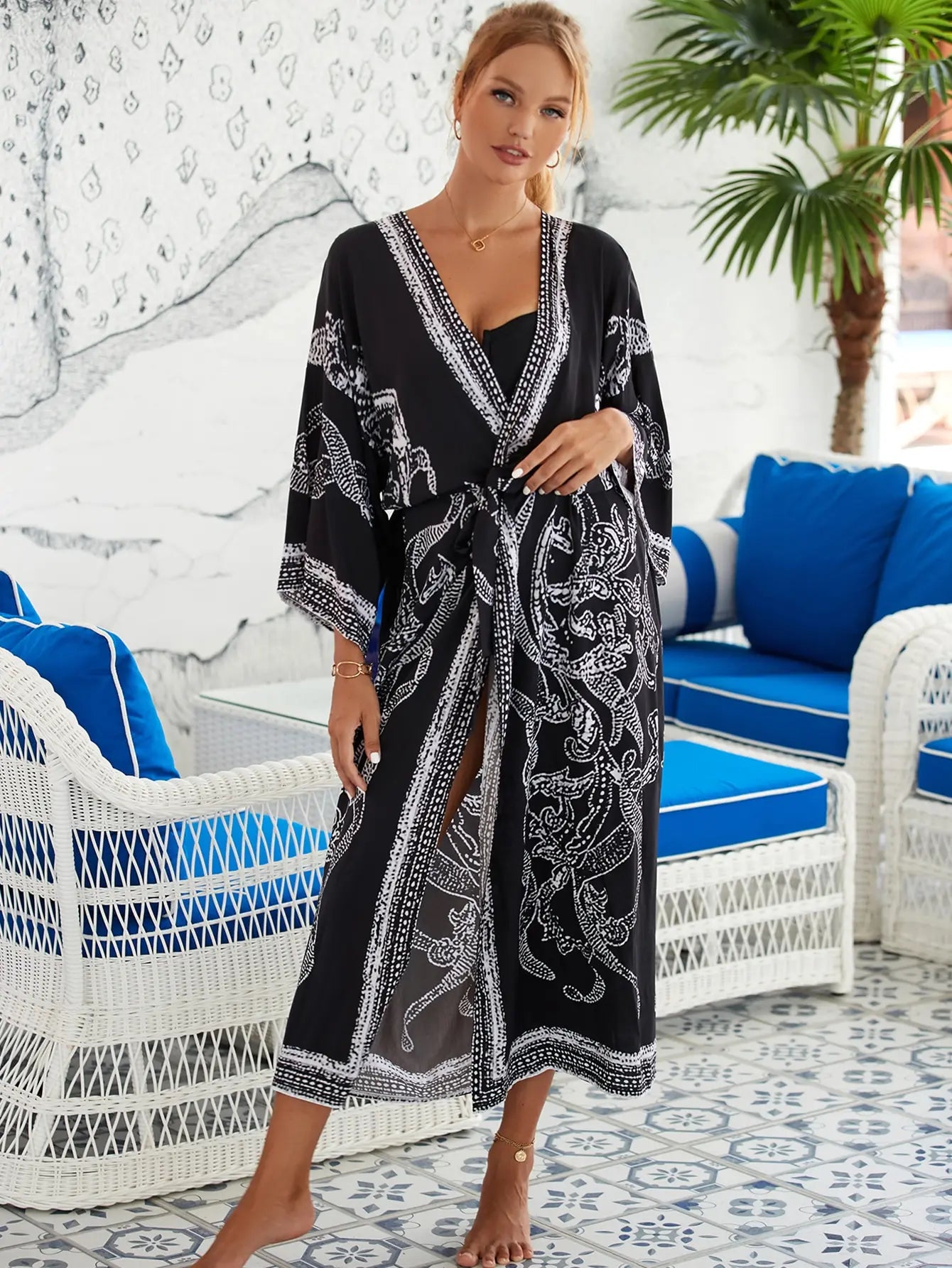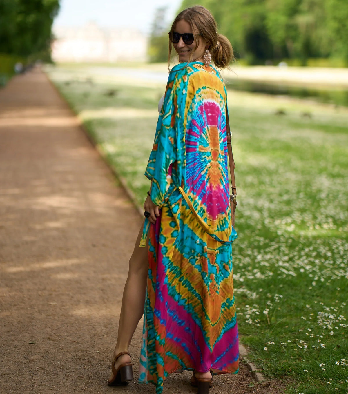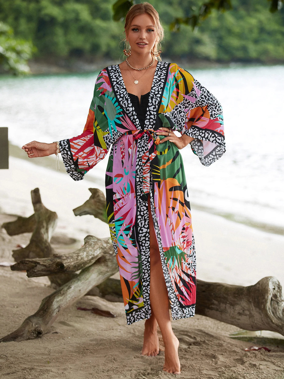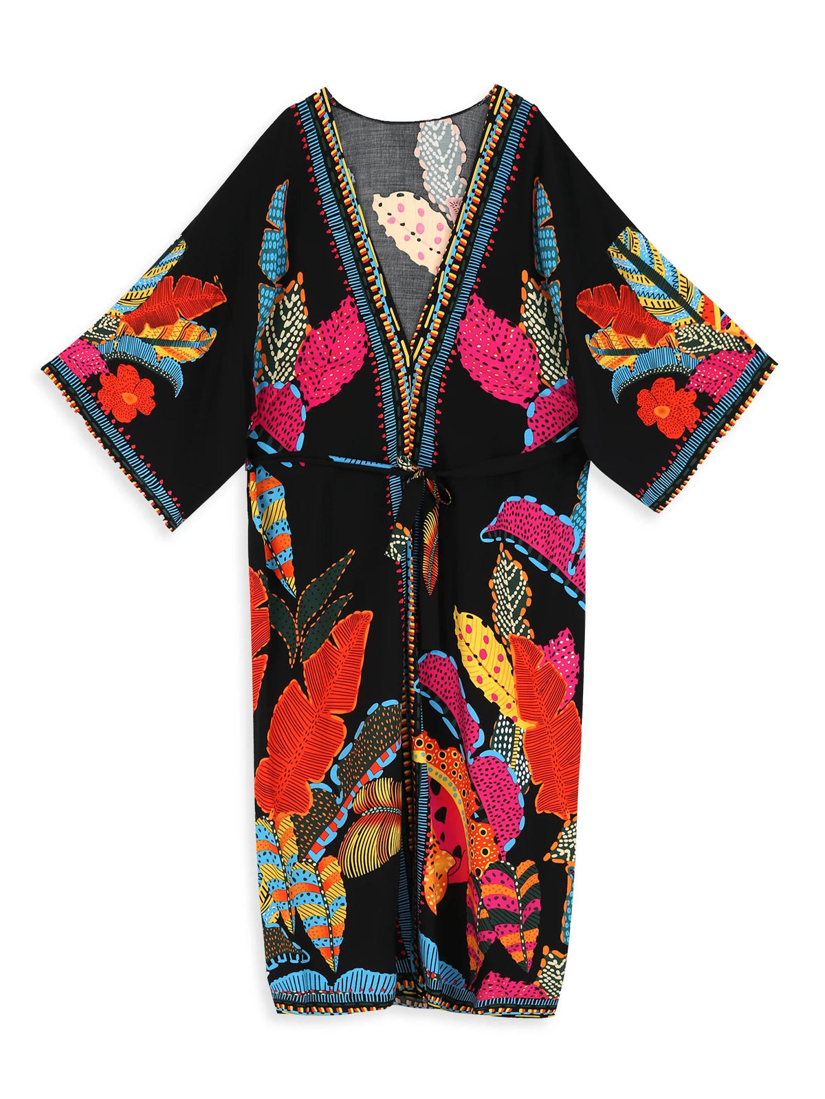 Bohemian Printed Belt Kimono – Flowing Elegance for Every Occasion - Golden blossom / One Size
