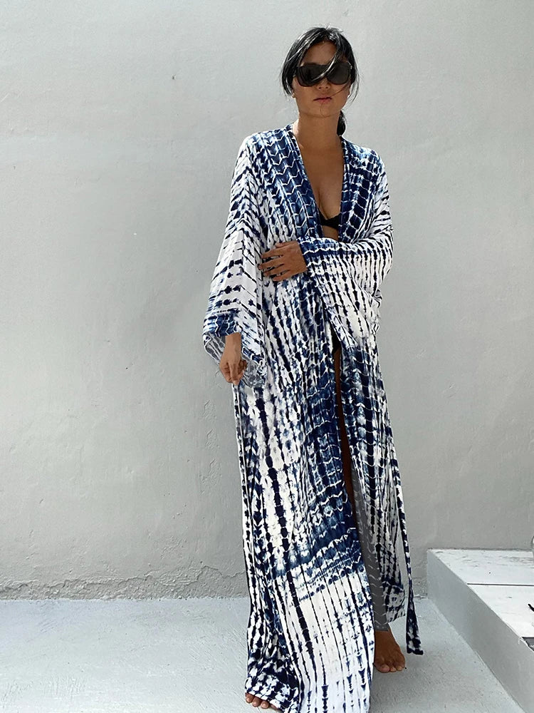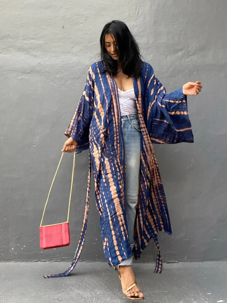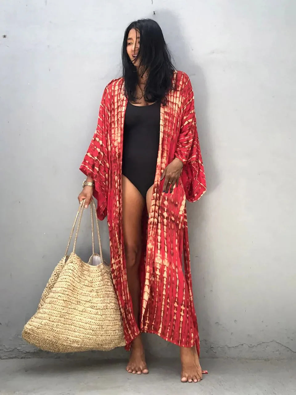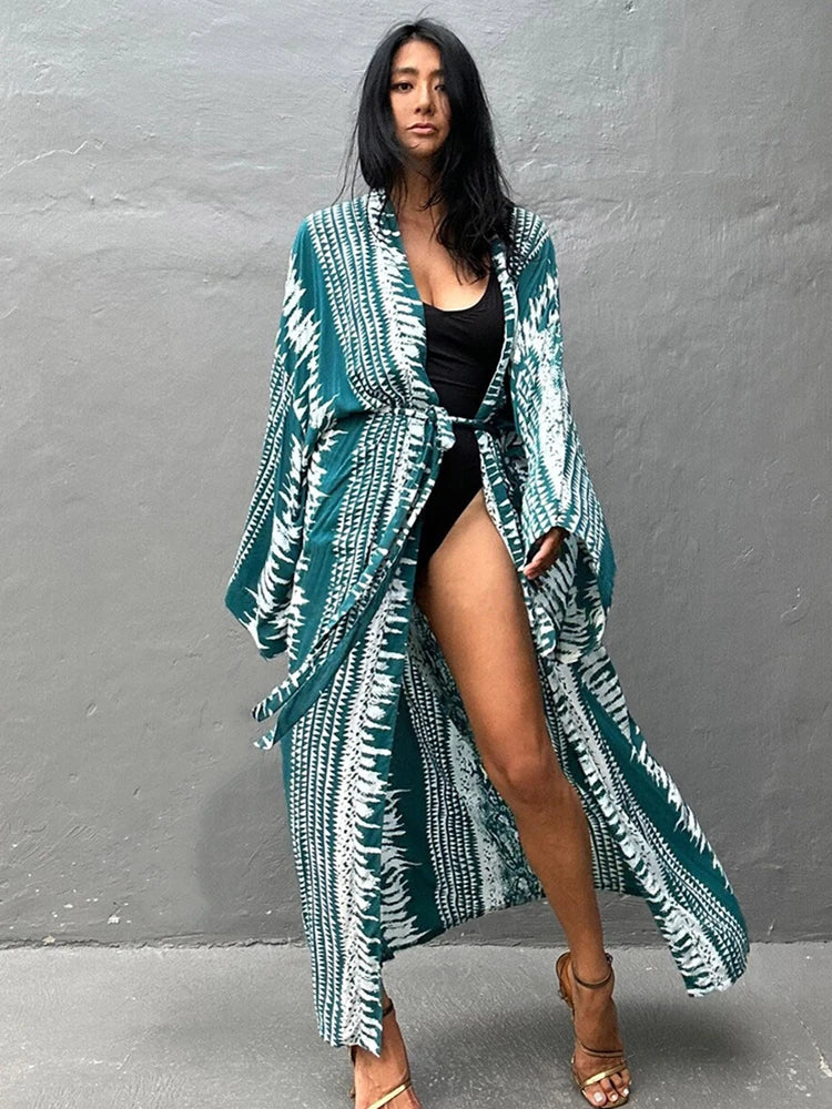Boho Stripe Belted Kimono – Sarong Tunic Beach Cover-Up