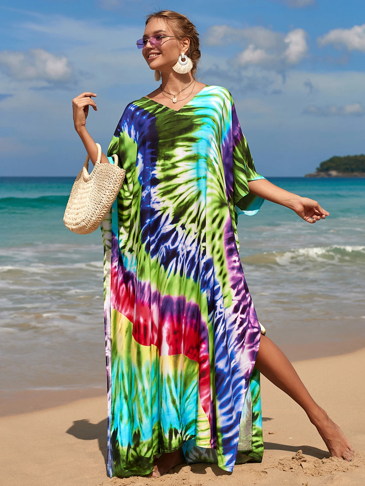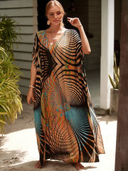Boho Summer Beach Kaftan Dress – Flowy Printed Maxi Cover-Up - Sunset Glow / One Size (Relaxed Fit)