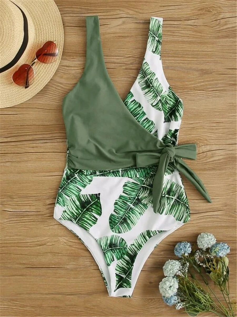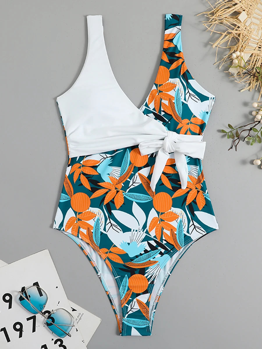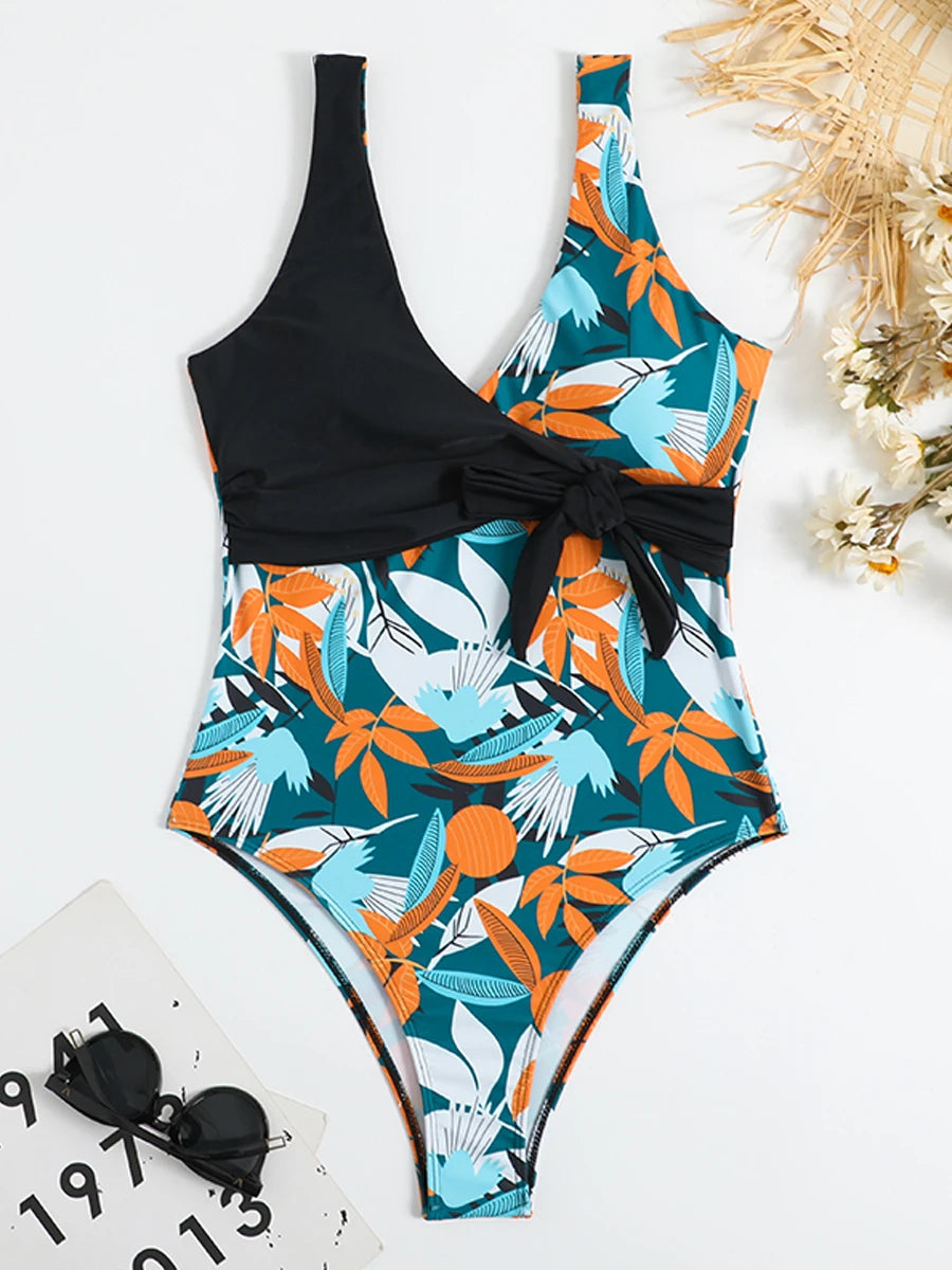 🌺 Feel the Summer Vibes in This Stunning Tropical Print Swimsuit! 🌺 This Tropical Print Belted One-Piece Swimsuit is designed...